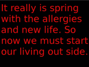 Yes it really is spring now. So time to plant and tend the earth. The world is fertile and reproducing.